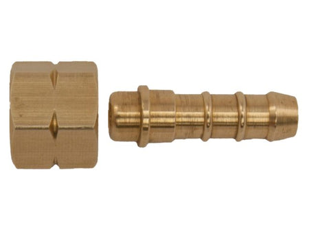 Gas fitting lige samlestykke i messing 1/4" venstre til 8mm slangeforbindelse
