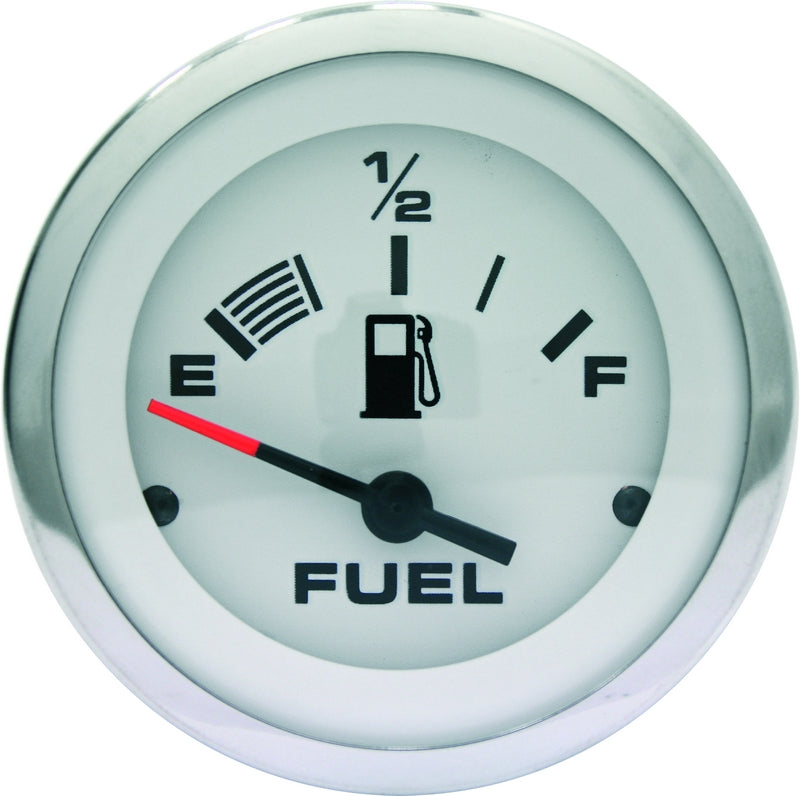 52 mm (2"), Tom-Halv-Full, 240-33 ohm, Veethree Lido Tågefri instrumentserie. Yderring i rustfrit stål. Sorte tal og sort niveaumarkering på hvid baggrund. Pointeren er sort med rød top. Lavprofilramme for at eliminere vand, der er tilbage på fælgen. Glasset er ridsefrit, og alle instrumenter er forsynet med nattelæselys for bedst mulig aflæsning.